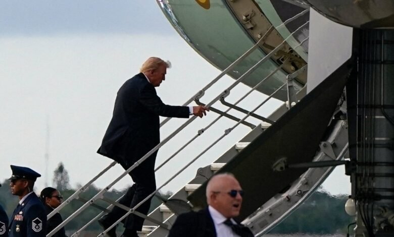 Another assassination attempt? Trump boards Air Force One using small stairs after sniper nest found near Palm Beach airport