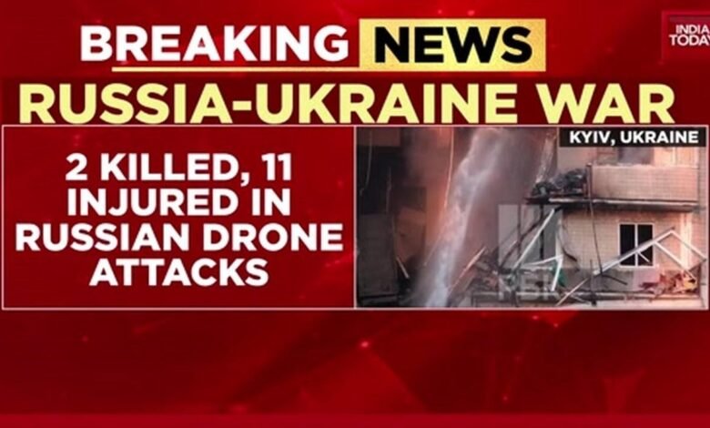 A mass Russian drone attack has struck Kyiv, the capital of Ukraine. According to Kyiv’s mayor, a fire broke out on the top floor of an administrative building in the city’s center, located in the Pechersk district. Ukrainian officials have stated that the attack resulted in two fatalities and 11 injuries. Ukraine’s military has also reported on the incident. Visuals of the fire have been received, confirming the event. This development occurs as the Russia-Ukraine war is being discussed on the global stage, with efforts underway to find a solution and negotiate peace between the two nations.