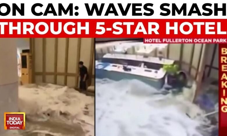 Super Typhoon Ragasa havoc: Massive waves crash into Hong Kong hotel lobby