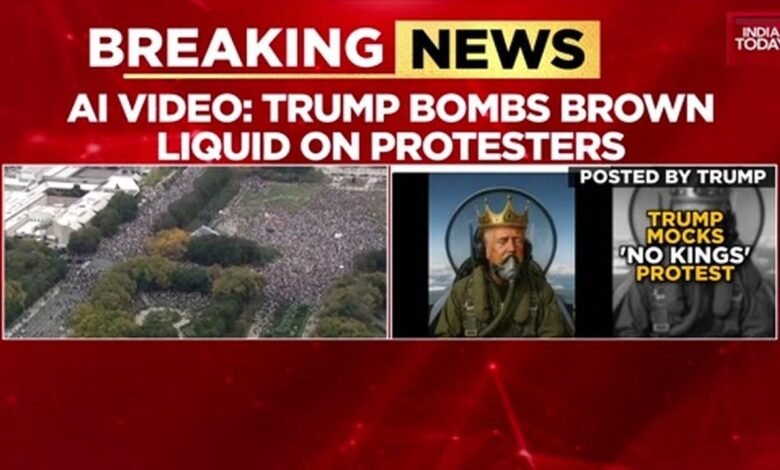 This special report focuses on the massive ‘No Kings’ protests across the United States against Donald Trump and his controversial response. In a move described by India Today’s Geeta Mohan as ‘very unpresidential in terms of what he’s done’, Trump posted a doctored AI-generated video on social media. The video depicts him flying a ‘King Trump’ jet and dropping a brown liquid, which the reporter suggests is meant to be human feces, on the demonstrators below. The nationwide protests, organized by progressive groups, are a reaction to what participants see as rising authoritarianism and an erosion of democracy under the Trump administration.