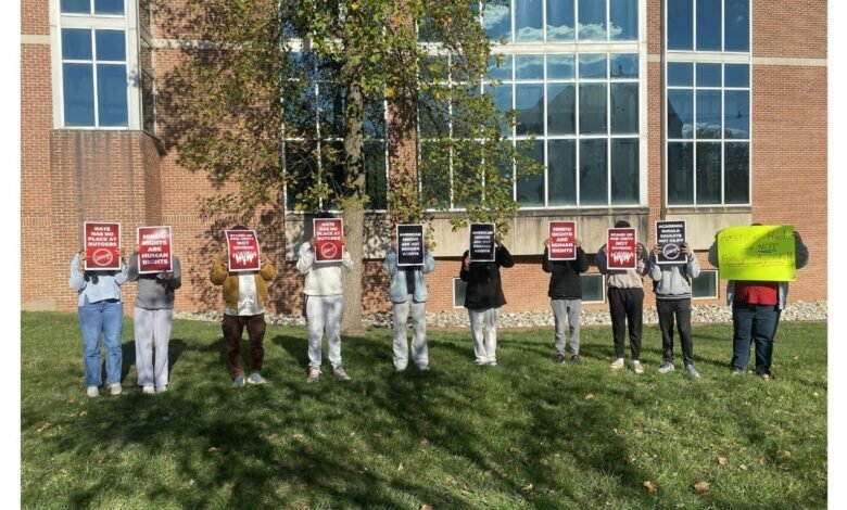 Some of the signs read, “Hindu rights are human rights,” “Hate has no place at Rutgers,” and “American Hindus are not foreign agents.”