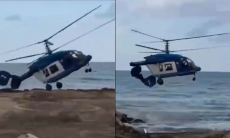 Footage shared on social media showed the helicopter’s tail breaking off before it plunged into the ground. The pilot briefly managed to lift the aircraft over shallow waters before losing control completely.
