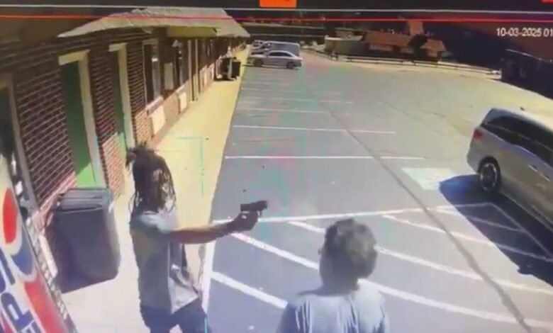 The surveillance video, widely shared on social media, captures the moment Patel calmly exits the motel to investigate a disturbance — just seconds before he is tragically shot in the head.